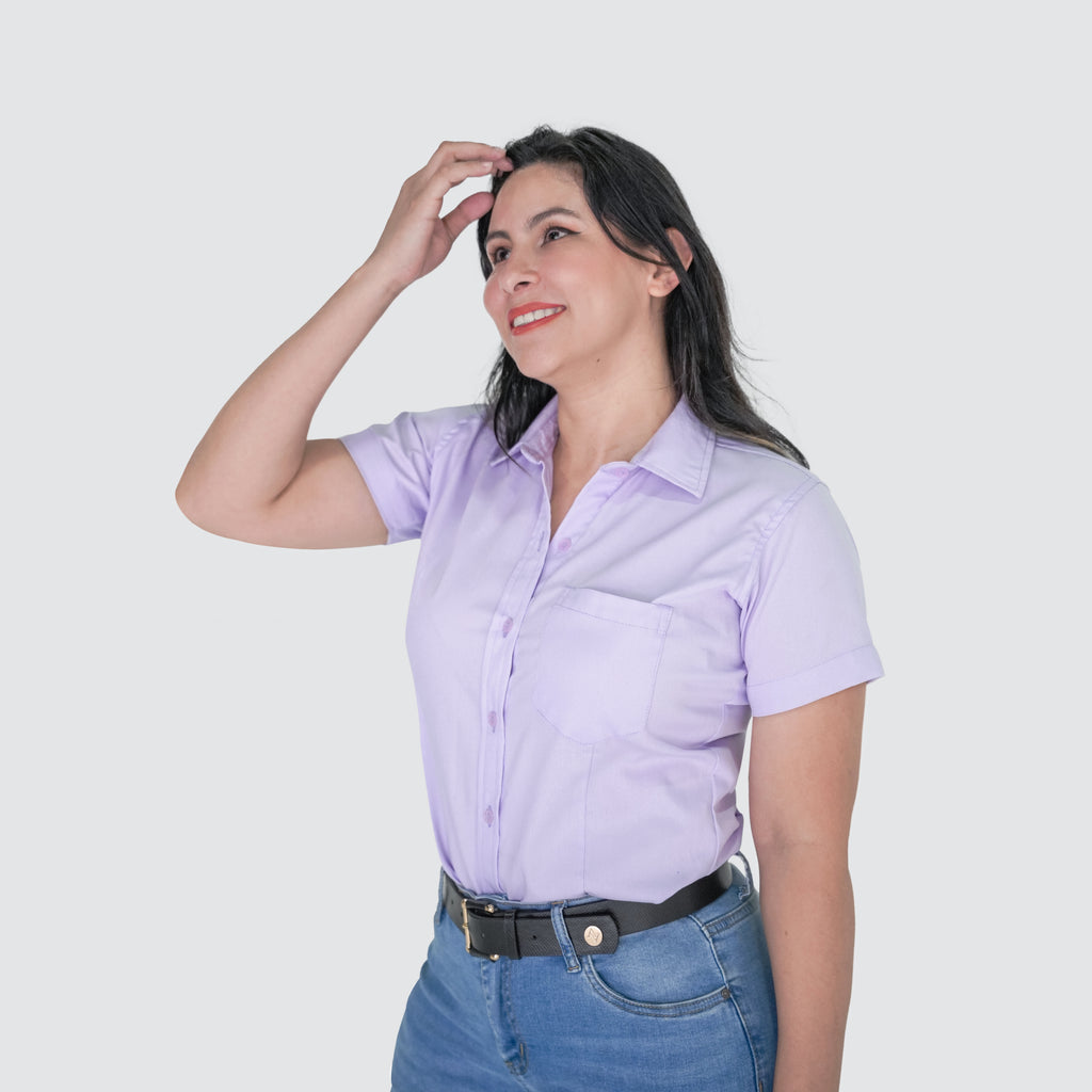Blusas manga corta confeccionadas con tela lino Oxford de acabado suave con una bolsa al frente, corte estándar. |